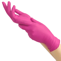 Рукавички нітрилові MediOK Magenta яскраво рожеві, розмір XS, 100 шт/уп. — одноразові захисні рукавички для професійного використання в салонах краси, медицині та косметології. Забезпечують надійний захист рук від вологи, забруднень та впливу хімічних засобів.