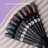 Katze 5D Mett Expert — хітова палітра гель-лаків “Кошаче око“, яку обожнюють майстри за створення загадкового космічного дизайну манікюру. Основа гель-лаку напівпрозора, має низьку щільність пігменту, зі шматочками поталі різних кольорів. Консистенція гель-лаку середньо-густа, оптимальна для швидкого покриття. Кожний відтінок із 19 кольорів палітри Katze 5D — коктейль з різнокольорових металізованих частинок, що утворюють неймовірний промінь космічного сяйва. Переваги Katze 5D Mett Expert: унікальний космічний фіолетово-бірюзовий відтінок середньо-густа консистенція для щільного покриття гель-лак достатньо 1-2 шари гель-лаку чудово просихає в лампі не має різкого запаху Технологи рекомендують: для досягнення максимального ефекту “котячого ока“ використовуйте підкладку з чорного гель-лаку або гель-лаку кольору в тон обраного відтінку Katze 5D. Спробуйте гель-лак Katze 5D — створіть неповторний космічний дизайн! Технологія нанесення: Зніміть старе покриття, зробіть манікюр, надайте бажану форму нігтям. Знежирюйте поверхню нігтя за допомогою знежирювача та безворсової серветки. Нанесіть праймер і дайте просохнути на повітрі до 15 секунд. Нанесіть базу на поверхню нігтя. Дайте просохнути в UV лампі — 2 хв, а в LED — 30 сек. Нанесіть на нігтьову пластину обраний гель-лак в 1 шар, прикладіть магніт. Дайте просохнути в UV лампі — 2 хв, а в LED — 30 сек. Для щільного покриття нанесіть другий шар гель-лаку, прикладіть магніт. Дайте просохнути в UV лампі – 2 хв; LED – 30 сек. Нанесіть тонкий шар топу на ніготь. Дайте просохнути в UV лампі — 3 хв, а в LED — 1 хв.